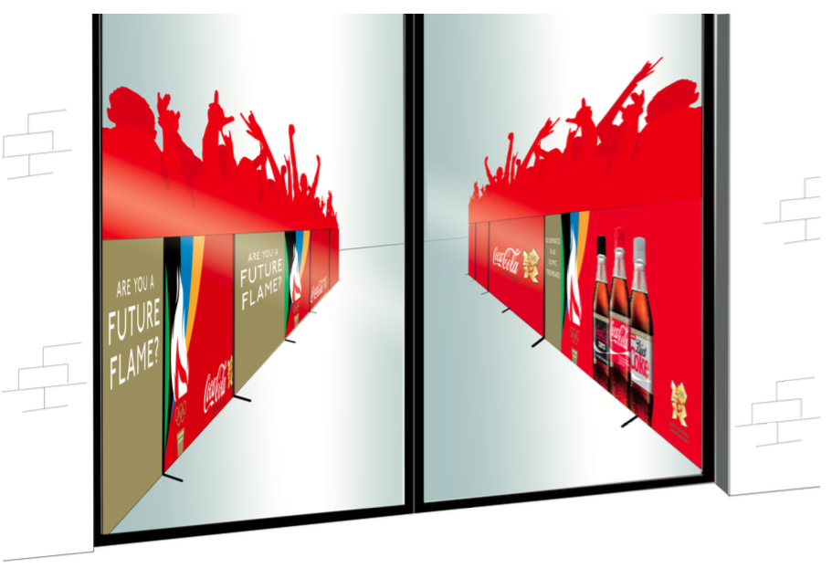 In the build up to London 2012, we created this in-store campaign for Coca-Cola. Mapping the shopper's journey through the retail environment, it gave them the chance to get involved and become an Olympic torchbearer. With entrance door decals providing instant theatre on your approach to the store, we put shoppers in a torchbearer's shoes from the get go.